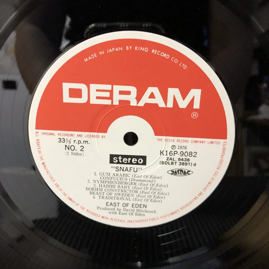 East Of Eden – Snafu álbum lançado em 1976 no Japão, disco em bom estado(tocando perfeitamente), encarte com notas em Japonês, capa com Obi em excelente estado de conservação.