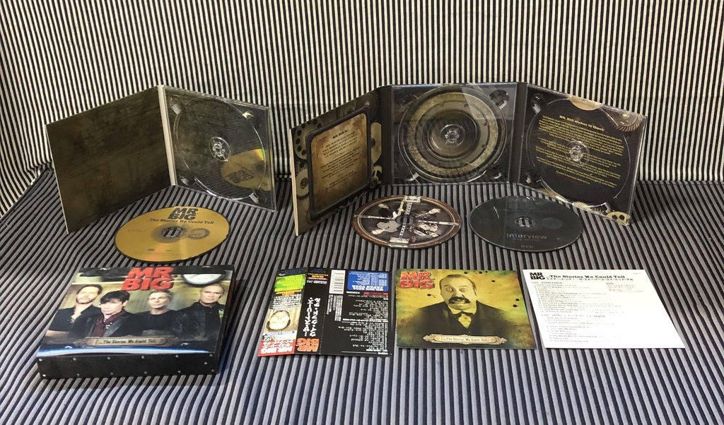 Mr. Big – ...The Stories We Could Tell álbum de edição limitada lançado em 2014 no Japão, 2xCDs apenas o CD2 tem um risco superficial que não interfere na reprodução nem no áudio, DVD sem nenhum arranhão ou avaria, encarte com letras e notas em japonês, encarte com foto e letras em inglês, caixa digipak com slipcase 3D e Obi, tudo em bom estado de conservação.