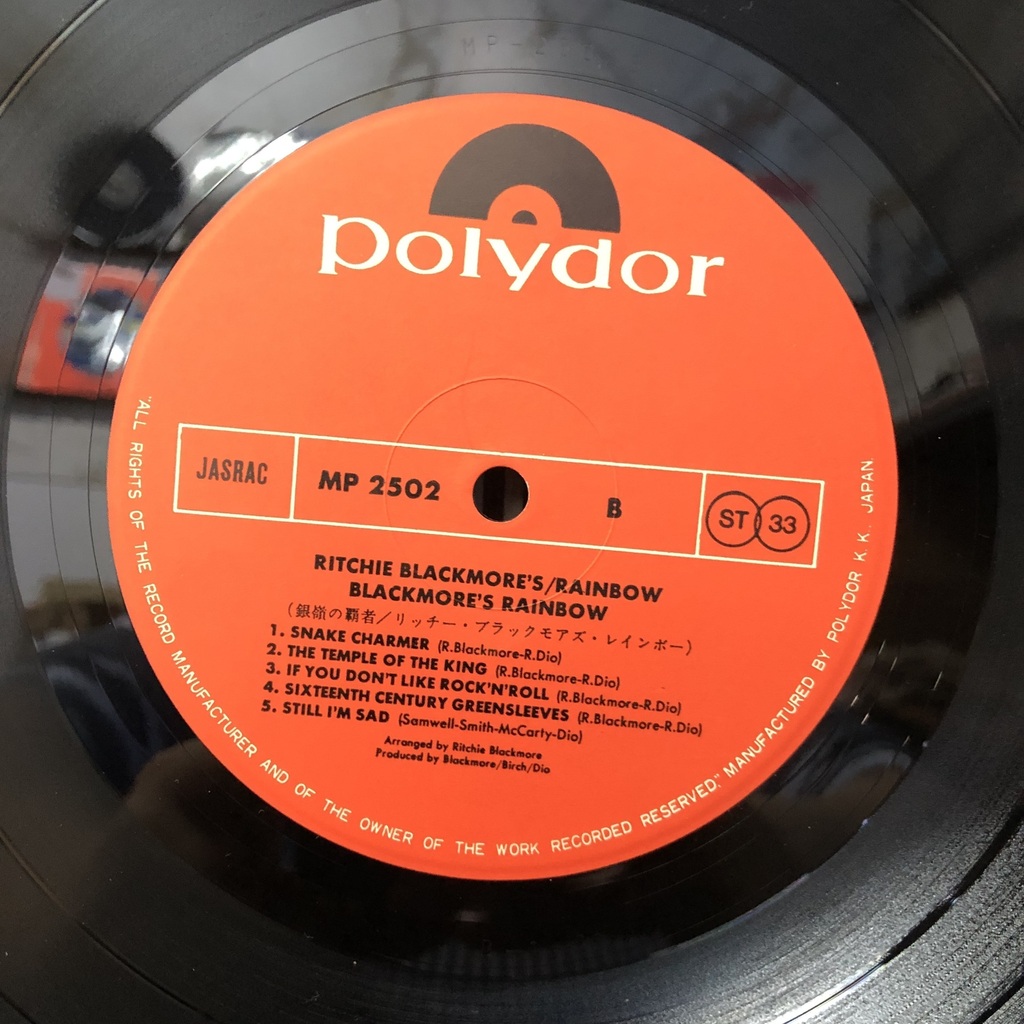 Rainbow – Ritchie Blackmore's Rainbow álbum lançado em 1975 no Japão, disco sem nenhum arranhão ou avaria, encarte com letras e notas em inglês e japonês, encarte com discografia de lançamentos da época, capa gatefold com Obi em excelente estado de conservação.