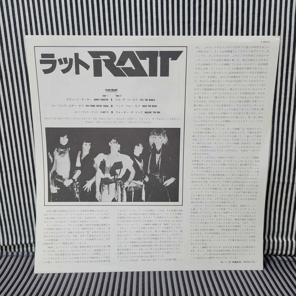 Ratt – Ratt Álbum lançado no Japão em 1985, disco em excelente estado, encarte com letras em japonês e inglês, adesivo, capa com obi ainda no plástico original em excelente estado de conservação.