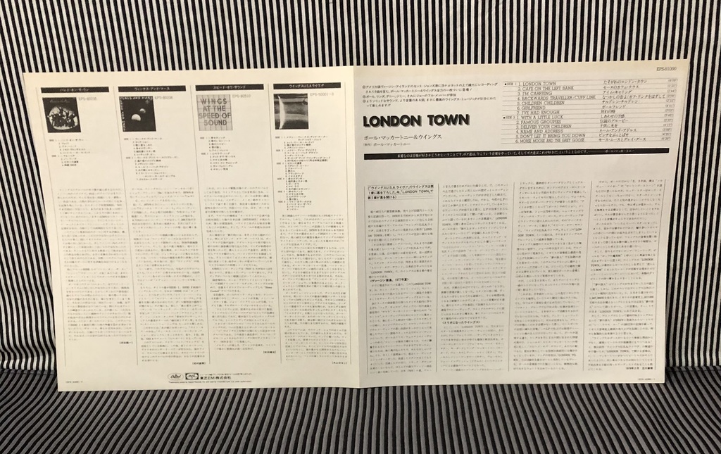 Wings – London Town álbum lançado em 1978 no Japão, disco sem nenhum arranhão ou avaria, encarte com letras e notas em japonês, capa interna com letras em inglês, pôster frente verso, capa com Obi, tudo em excelente estado de conservação.